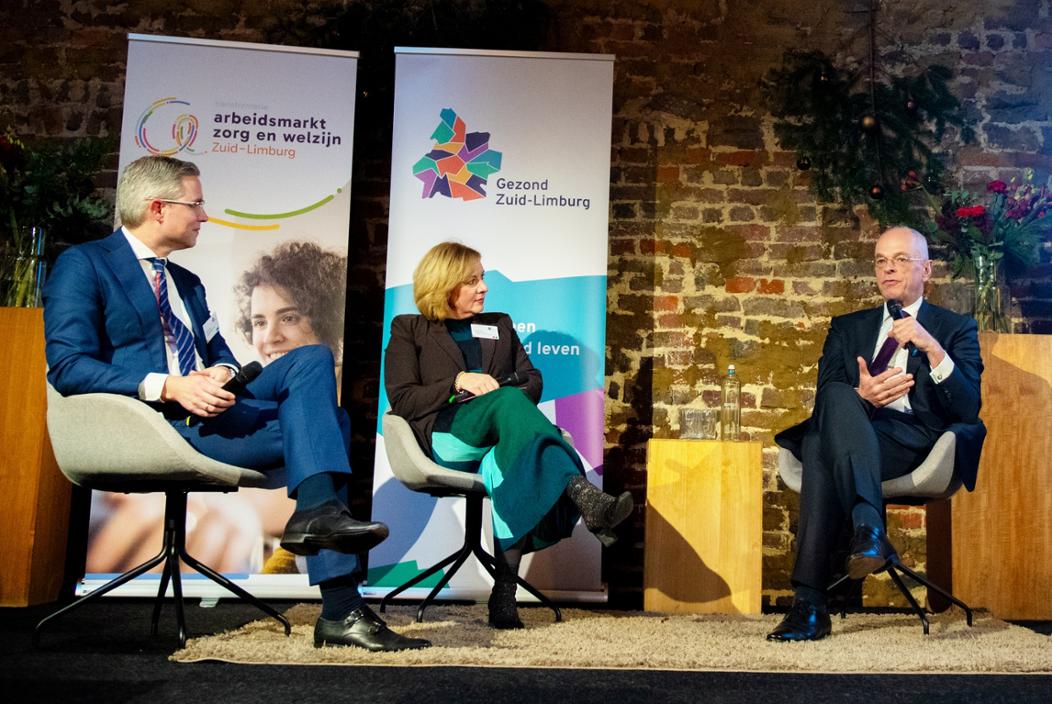 De minister complimenteerde de regio nadrukkelijk: “De manier waarop we arbeidsmarkt met elkaar oppakken in Zuid-Limburg is uniek en een voorbeeld voor alle andere provincies en regio’s in Nederland. Het straalt liefde voor het vak uit. De samenwerking hierin is inspirerend. Het is knap hoe de steen aan het rollen is gebracht. Meer passende zorg, beter triëren in het sociaal domein, handen vrij spelen in de eerste- en tweedelijn, preventie en de zorg ontlasten. Het maakt onderdeel uit van een breder plan om de zorg goed overeind te houden en dat betekent keuzes maken. De zorg in Nederland verdient onze aandacht én liefde. En de enige goede manier om vooruit te komen, is in gesprek blijven, want perfect zullen we het nooit doen. Maar ik hoop dat u veel trots voelt op de manier hoe u dit weerbarstige onderwerp aanpakt en dat u de schouders eronder blijft zetten want makkelijk is het niet. Een groot compliment voor u allemaal!”